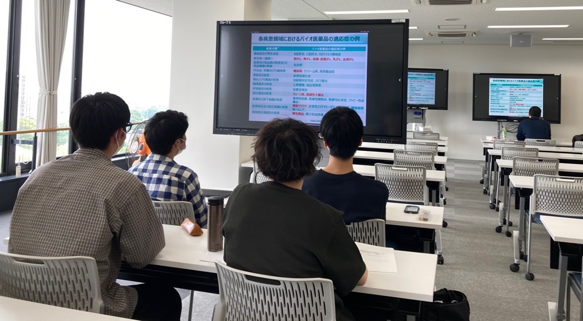 その後、少人数の班に分かれて「自然治癒力」と「薬の主作用と副作用」のテーマでグループディスカッションを実施。中学生向けの模擬授業も行い、教育現場を意識した実践的な学びの場となりました。