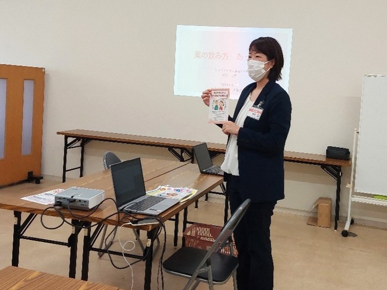 講演では、正しい服薬の方法、ポリファーマシーについて、お薬手帳の活用と電子お薬手帳の紹介、薬剤耐性への理解についてお話ししました。