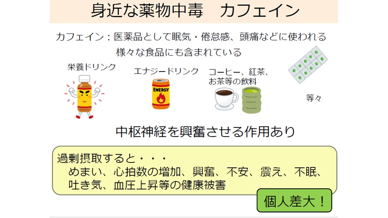 • 違法薬物の危険性を強調する例はよくあるが、なぜ危険なのか、その理由(原因と結果)についても説明する必要があると考える。危ない、ダメ、恐怖心を煽るだけでは、児童・生徒の理解促進にはつながらない可能性がある。
