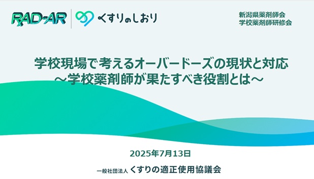新潟県薬剤師会学校薬剤師研修会で講演 https://rad-ar.or.jp/topics/post?id=1991a53b33333743100003d8 くすりの適正使用協議会 Mon, 04 Aug 2025 10:00:00 +0900 https://rad-ar.or.jp/topics/post?id=1991a53b33333743100003d8