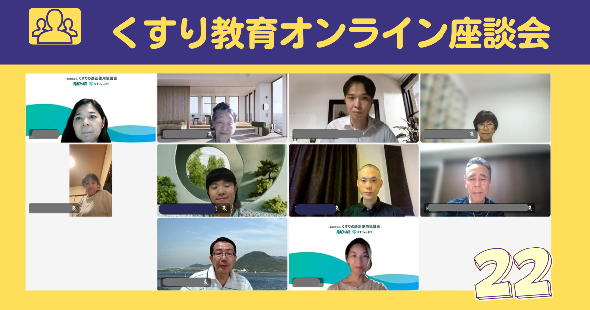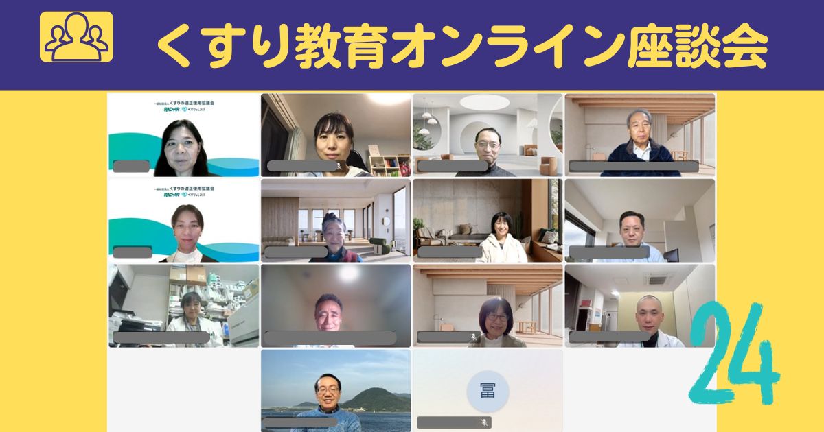 くすり教育の現場の声を教材開発に生かし、教材利用者同士の情報共有を目的とする「くすり教育オンライン座談会」。